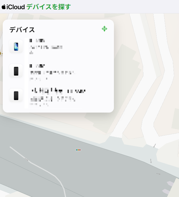 ②「デバイス」の中から、消去したいアカウントのiPhone、iPadを選択します。